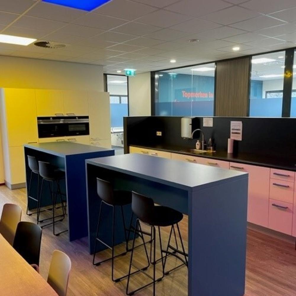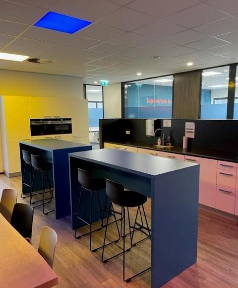 Bij deze ingerichte kantoorruimtes behoort tevens het gemeenschappelijk gebruik van de compleet ingerichte kantineruimte, voorzien van een keuken met o.a. oven, magnetron, vaatwasser, koelkast en Quooker. Daarnaast een gemeenschappelijke toiletgroep, garderobe, en buitenterras. Voldoende parkeergelegenheid en overdekte ruimte voor fietsen. Alle ruimtes zijn voorzien van airco, verwarming en boxen voor een gemeenschappelijke geluidsinstallatie. Een centrale patchkast zorgt voor internet (glasvezel) per kantoor.