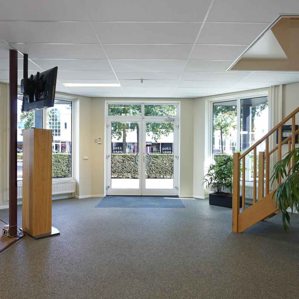 Het kantoorgebouw straalt door de architectuur en de groene omgeving een zakelijke, maar toch toegankelijke sfeer uit. De voor de verhuur beschikbare kantoorruimtes zijn gelegen op de eerste verdieping van het gebouw. De gezamenlijke entree op de begane grond geeft toegang tot de algemene ruimtes, bestaande uit een gezellige ontvangstbar met spreektafel. Op de begane grond is tevens een vergaderruimte aanwezig voor gemeenschappelijk gebruik. Medegebruikers in het gebouw zijn Innotax (fiscaal adviesbureau) en Grensloos (softwarebedrijf).